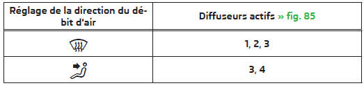 ou du climatiseur, les diffuseurs d'air suivants sont actifs.