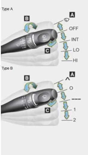 - Commutateur d'essuie-glace et du lave-glace de la lunette arrière (le cas échéant)