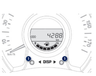 Une pression sur l'un des boutons 1 permet d'alterner l'affichage du kilométrage :
