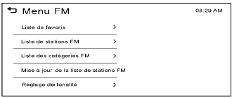 - Dans le menu AM ou FM, appuyer sur la liste de favoris à l'écran.