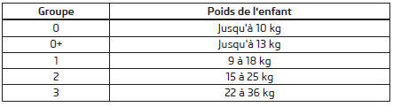 Catégories de sièges pour enfant selon la norme ECE-R 44.