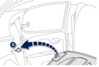 Lorsqu'elles ne sont pas utilisées, ou avant de rabattre le(s) dossier(s) de la banquette, veillez à ranger les ceintures arrière en insérant les pênes dans les logements dédiés, situés sur les montants latéraux.