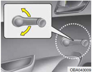Pour monter ou descendre la vitre, tournez la poignée du lève-vitre dans le sens des aiguilles d'une montre ou dans le sens inverse des aiguilles d'une montre.